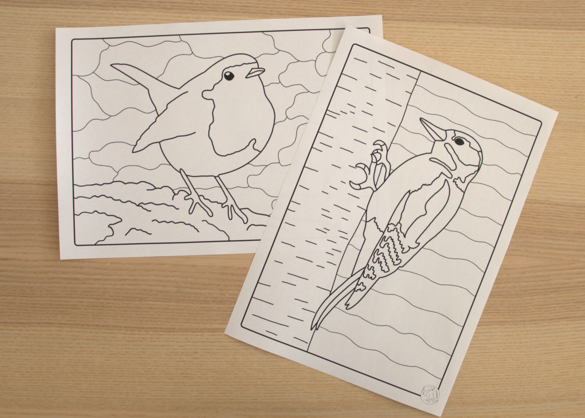 Alle Malvorlagen sind so gestaltet, dass das für den Vogel typische Muster einfach ausgemalt werden kann. Die Kinder können die Vögel mit Buntstiften, Filzstiften oder Wasserfarben anmalen.